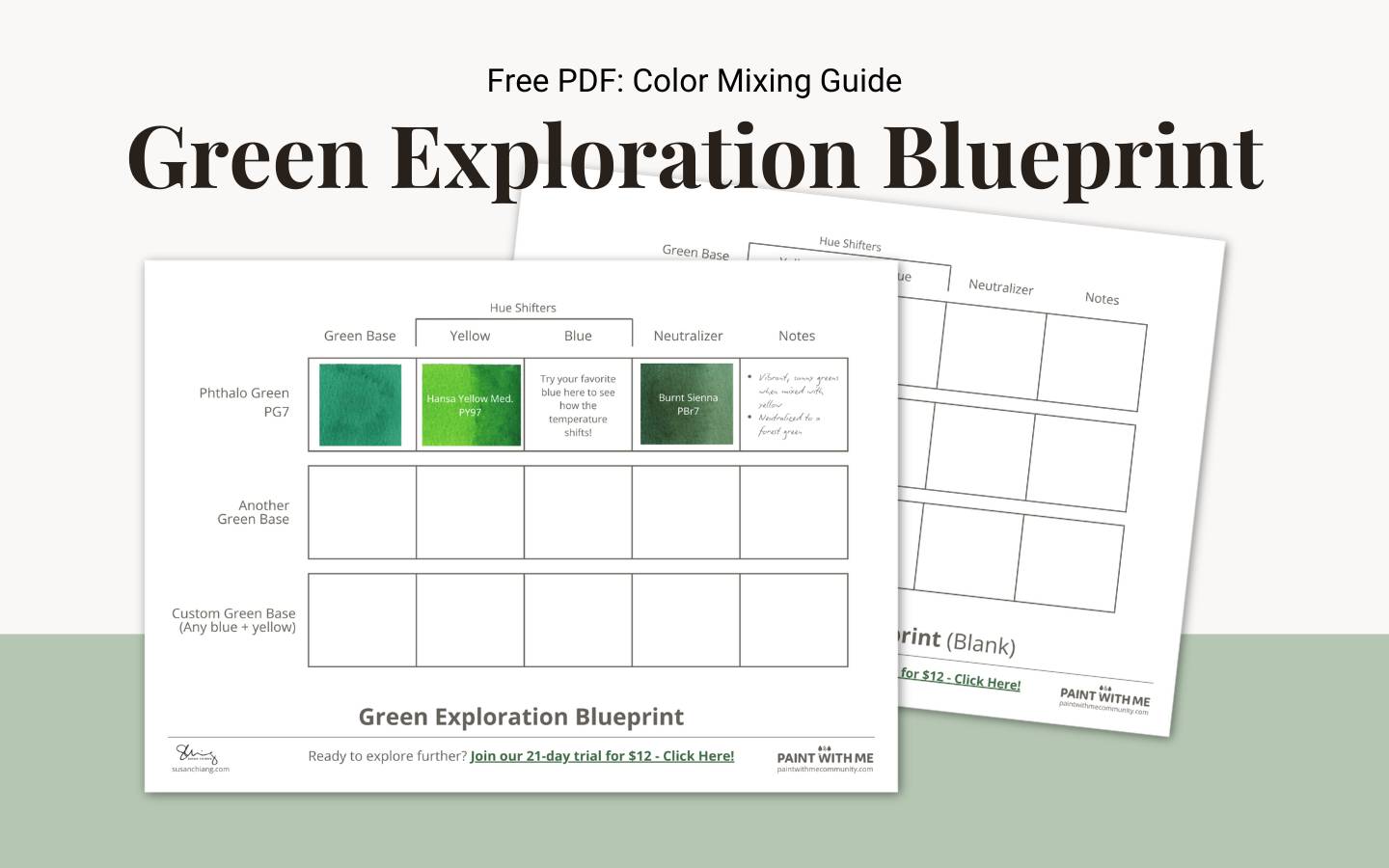 Download this 2-page template to simplify your color discovery process. This map guides you through a streamlined system of shifting and neutralizing a single base green to create a natural range of botanical tones.